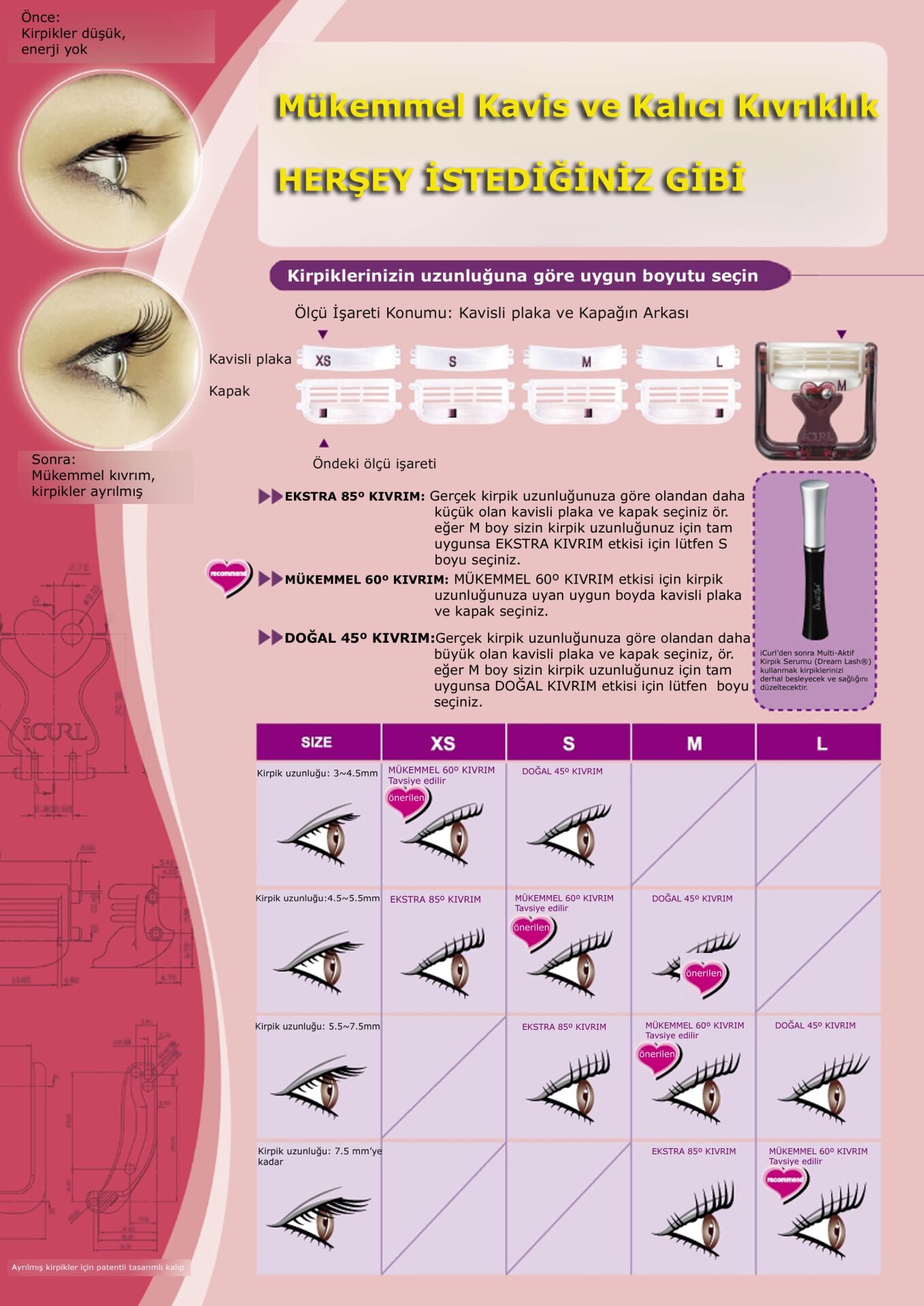 - Şekil Verme: Kirpikleri Kirpik Lifting aparatı üzerine sabitlenerek yeni form kazandırılır.